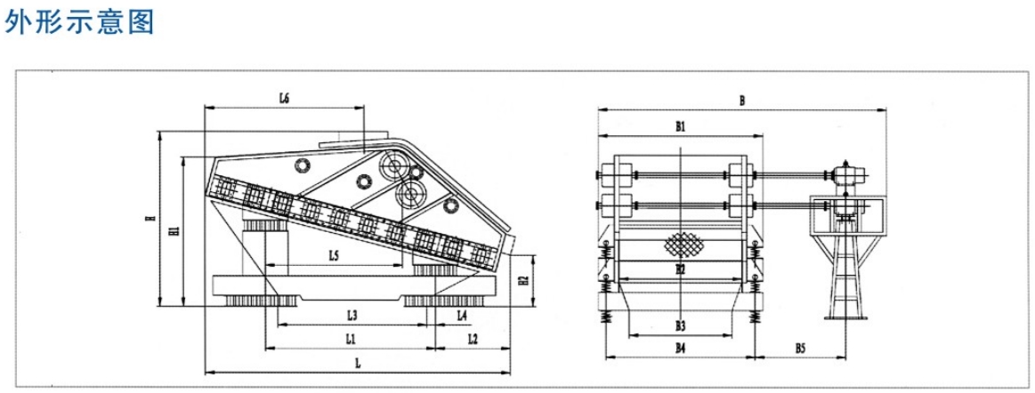 该系列振动筛由筛箱、激振器、支承弹簧、隔振架、二次隔振弹簧、电动机及其支架等组成。