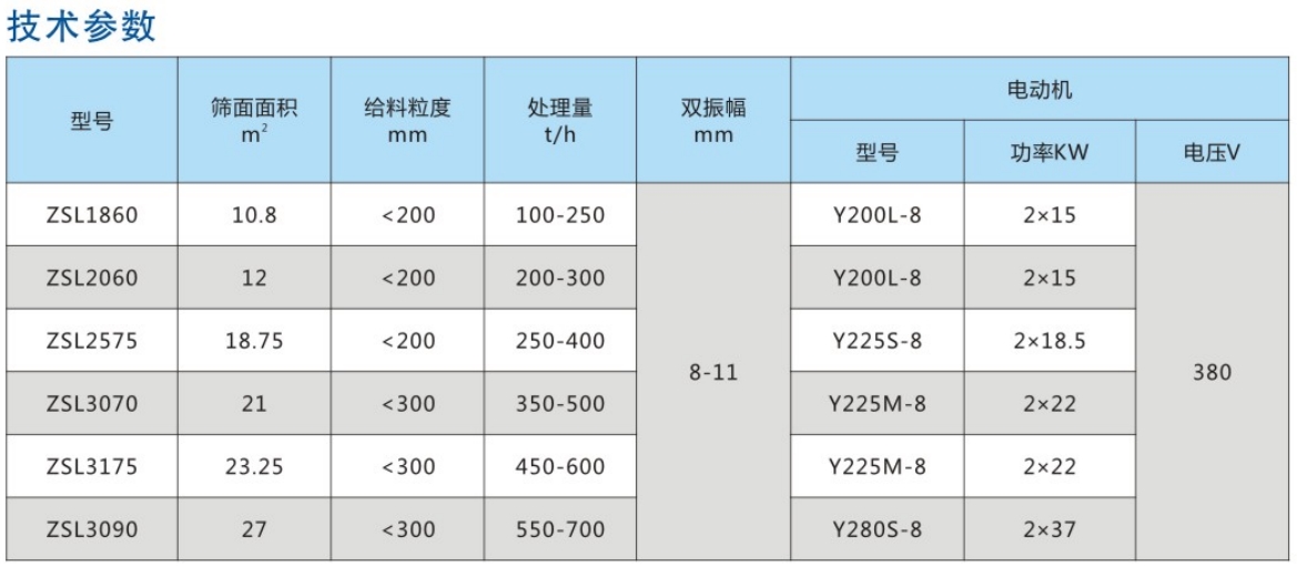 ZSL系列大型冷矿振动筛属于双轴直线振动筛,由两台电动机通过传动轴外拖动激振器作反向自同步旋转,使筛箱产生较大振幅的直线振动,电机不参振,这种振动筛具有生产能力大、工作可靠、振幅调节方便、传给基础的动负荷小等优点。已广泛用于冶金、矿山、煤炭、港口等工业部门,主要用于温度在150°C以下;冷烧结矿分级作业。