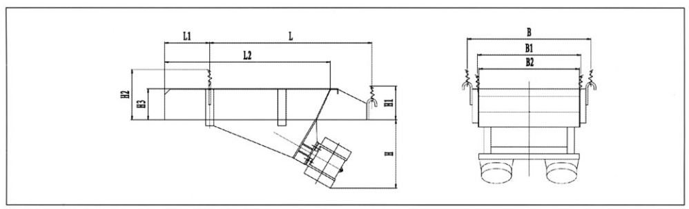 ⒉.安装后的给料机应留有100mm的游动间隙,横向应水平,悬挂装置采用柔性连接。