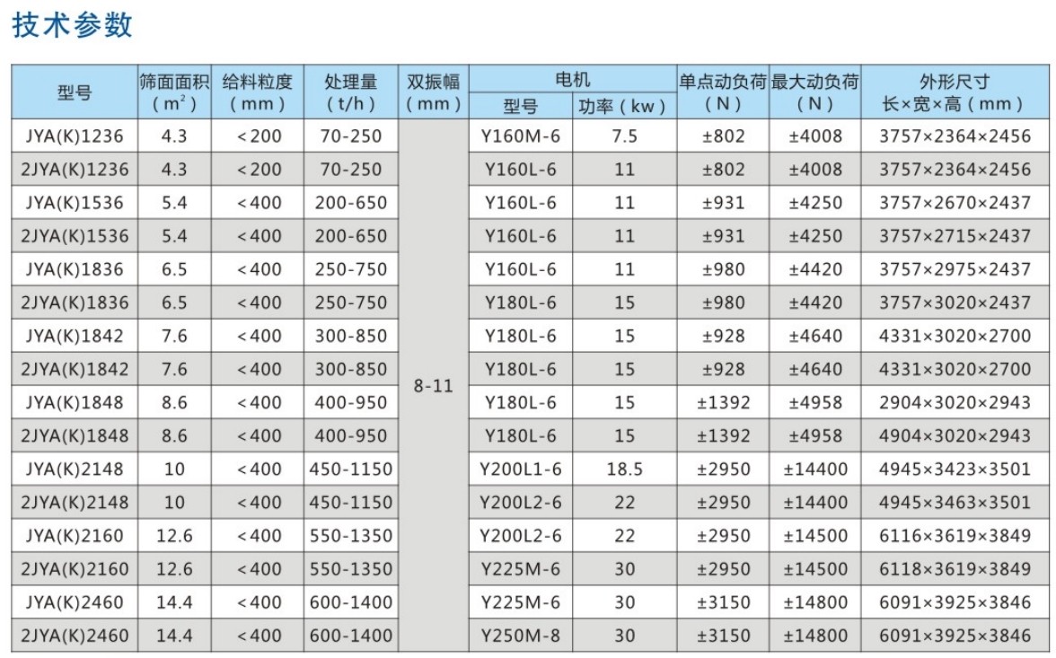 JYA(K)型圆振筛由振动源、筛体、筛网、减振装置和底托组成,筛机侧板采用优质钢板制作而成,侧板与横梁、激振器底座采用高强度螺栓或环槽铆钉连接,结构合理,坚固耐用。